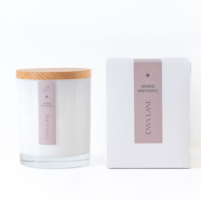 Wrap yourself in the sweet embrace of Japanese Honeysuckle - our best selling scent! A blend of a sweet flowering vine, grape and neroli. This candle is your personal garden of tranquillity, blooming all year round.
