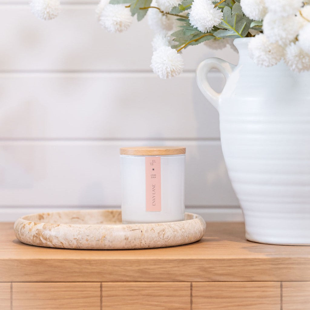 Our classic jar is not just any jar, but your candle’s chic best friend. Sleek, understated and topped with an elegant timber lid, it keeps your fragrance fresh but also doubles as a stylish accessory for any room. All candles are packaged in our simple yet sophisticated white gift box (as pictured).