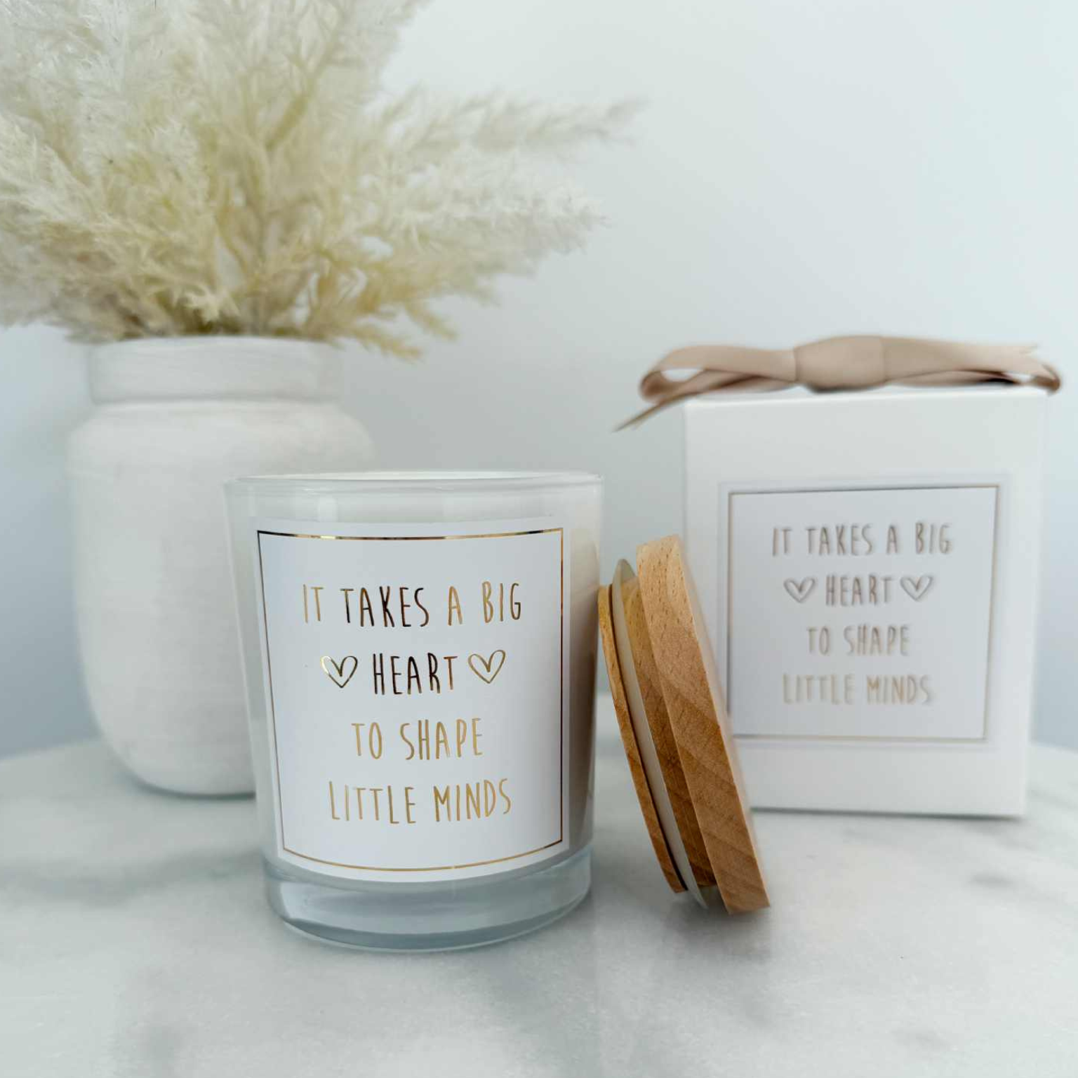 Label reads: "It takes a big heart to shape little minds."