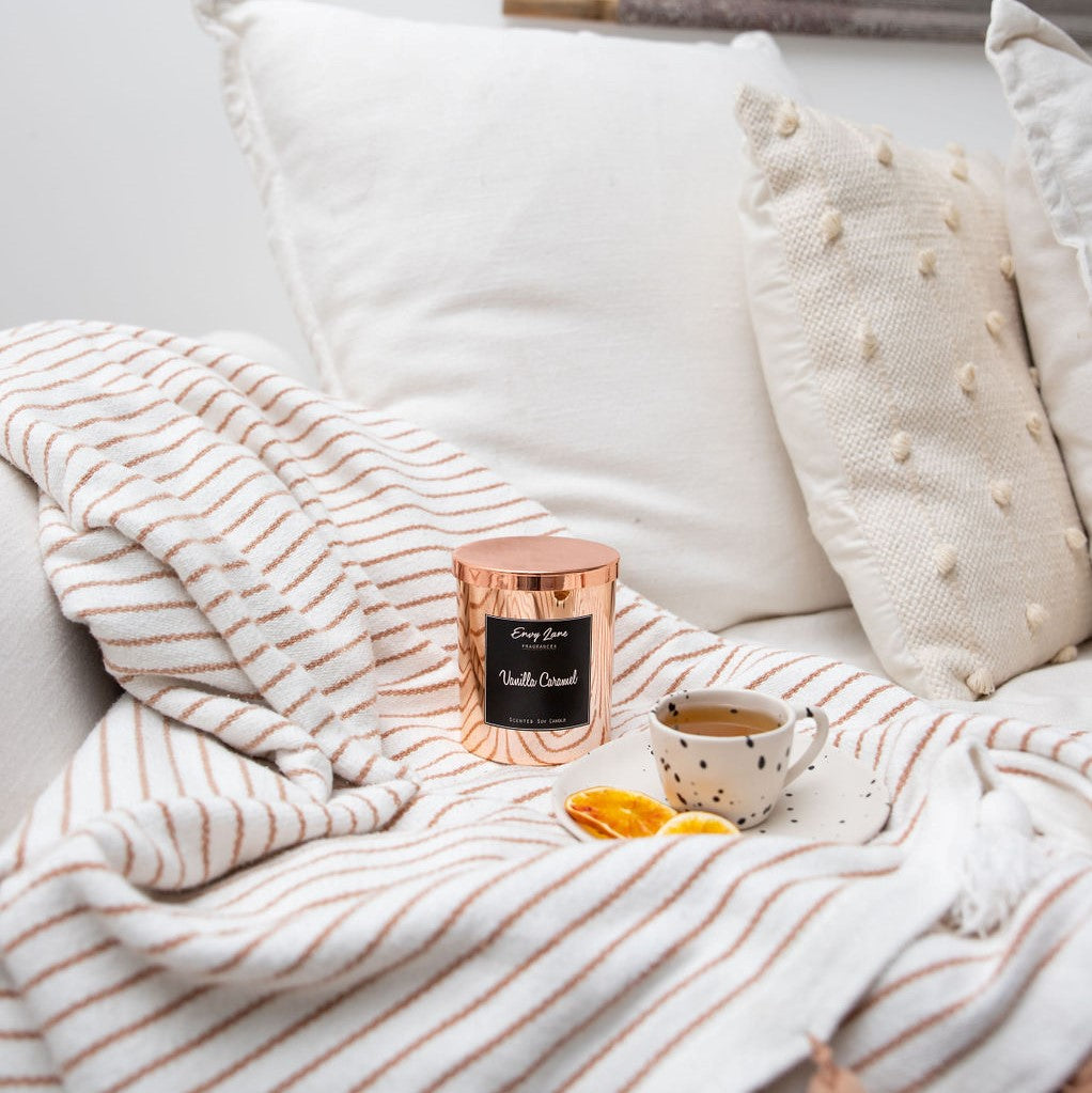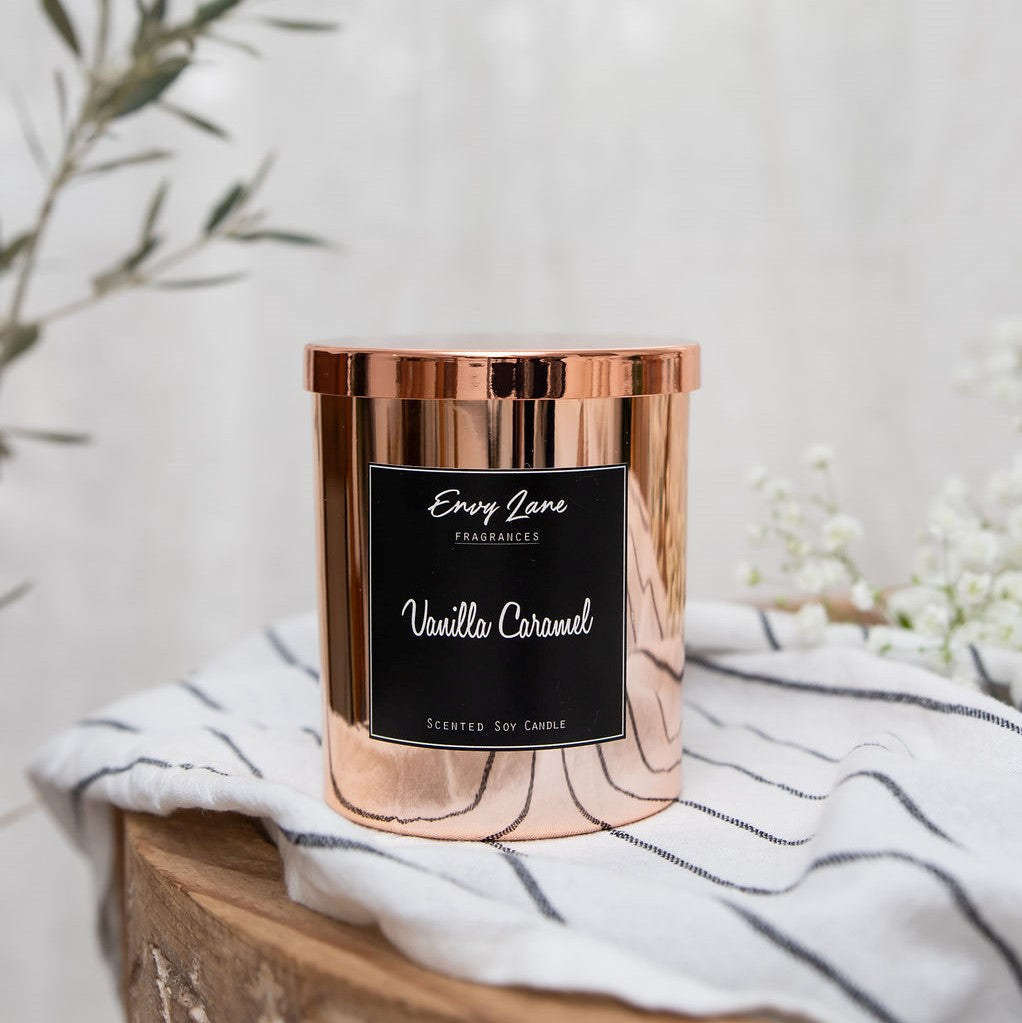 The Sierra is a stunning rose gold candle jar that makes a beautiful addition to any home. It is paired with a matching lid to keep your scent strong and protect it from dust.
